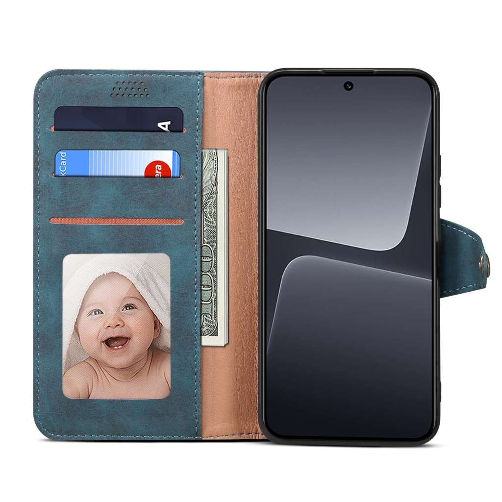 Pouzdro na telefon Xiaomi 13, flipové, umělá kůže, ochrana displeje proti poškrábání, integrovaný stojánek, prostor pro kreditní kartu a zavírání na magnet.