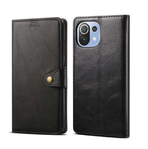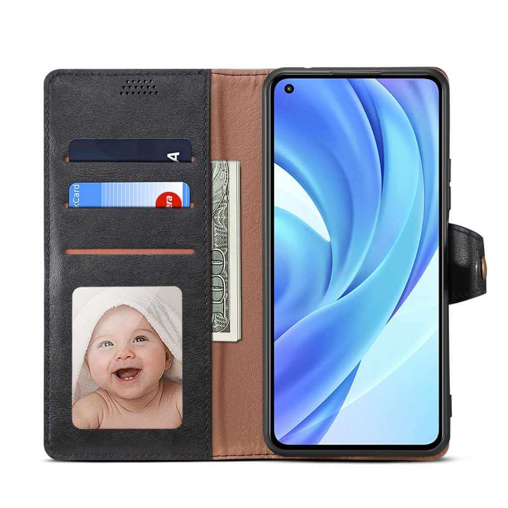 Pouzdro na telefon Xiaomi Mi 11 Lite, flipové, umělá kůže, ochrana displeje proti poškrábání, integrovaný stojánek, prostor pro kreditní kartu a zavírání na magnet.