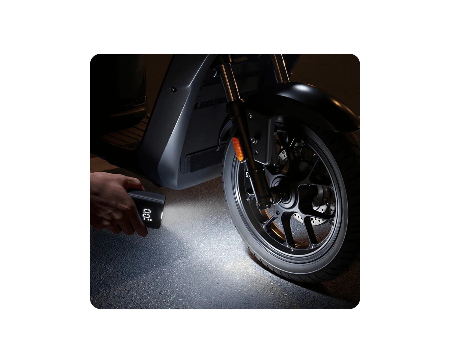 Díky vysokokapacitní lithium-iontové baterii o velikosti 2000 mAh zvládne zařízení na jedno plné nabití nahustit až 8 prázdných plášťů jízdních kol.