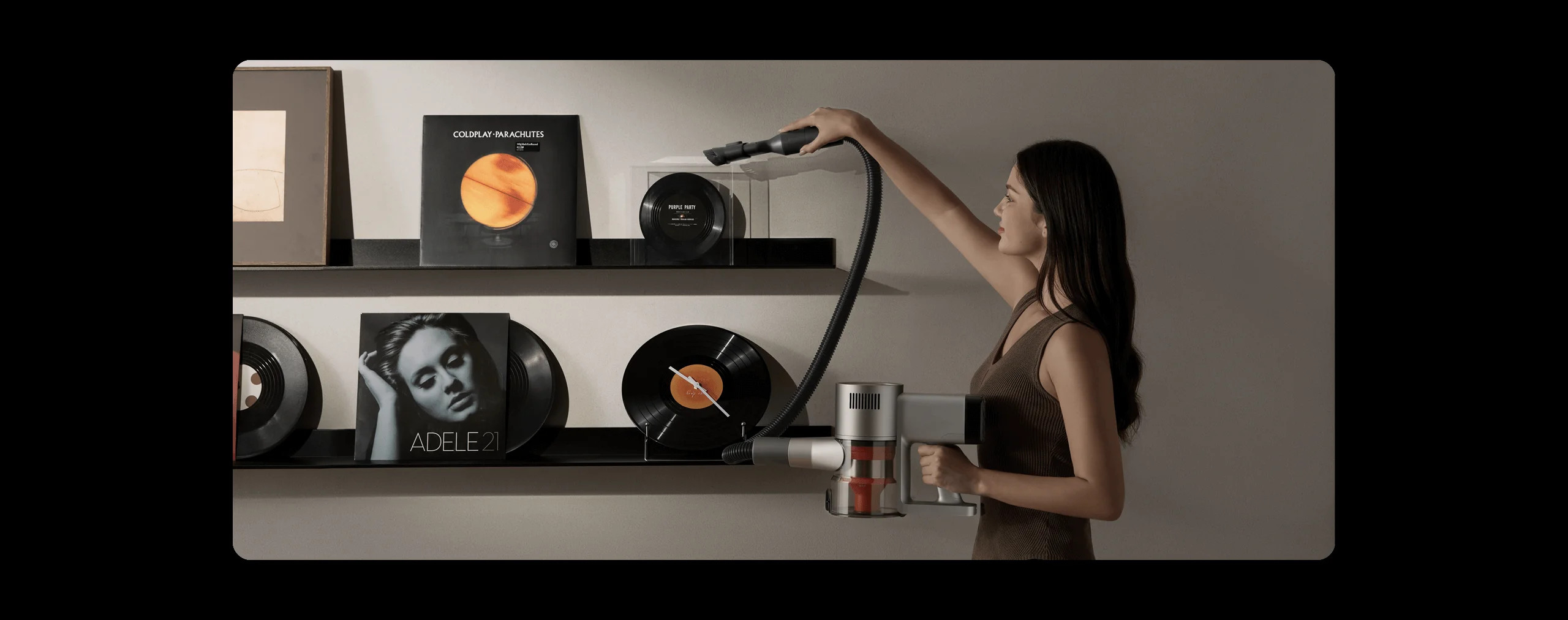 Díky 2v1 kartáčové hubici lze úhel sací hlavy libovolně nastavit, což umožňuje flexibilnější čištění rámů obrazů, skříněk, parapetů a dalších povrchů.
