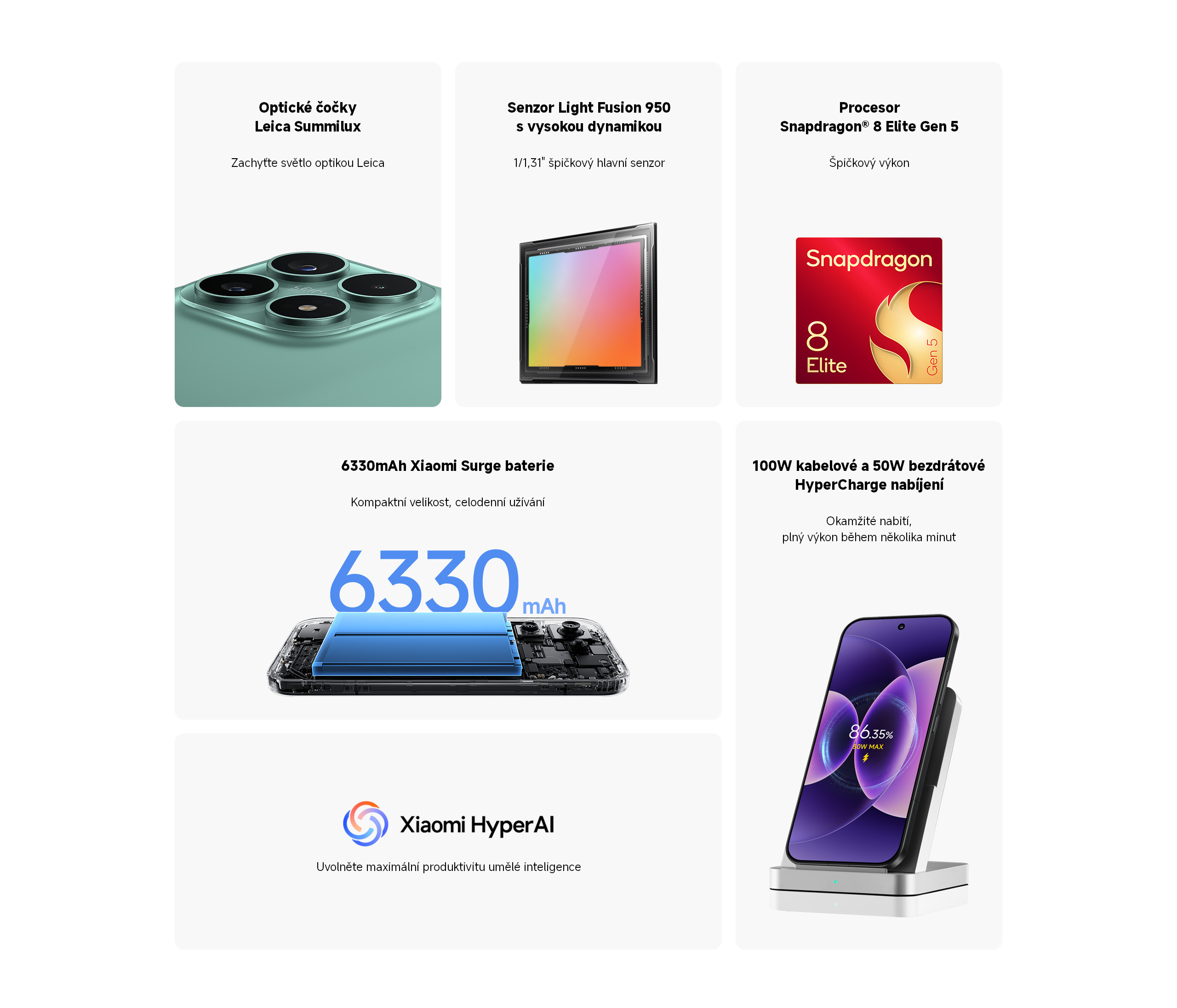 Díky vysoce energeticky husté křemík-uhlíkové baterii s 16% obsahem křemíku dosahuje Xiaomi 17 mimořádné kapacity baterie a výdrže, přičemž si uchovává lehkou a kompaktní konstrukci.