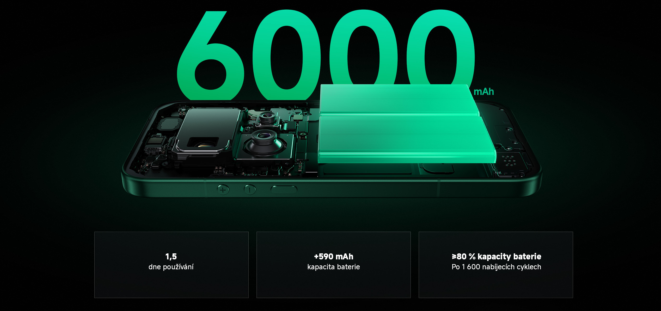 Baterie Kapacita baterie: 6000mAh Kabelové Turbo nabíjení: 90W Bezdrátové HyperCharge nabíjení: 50W