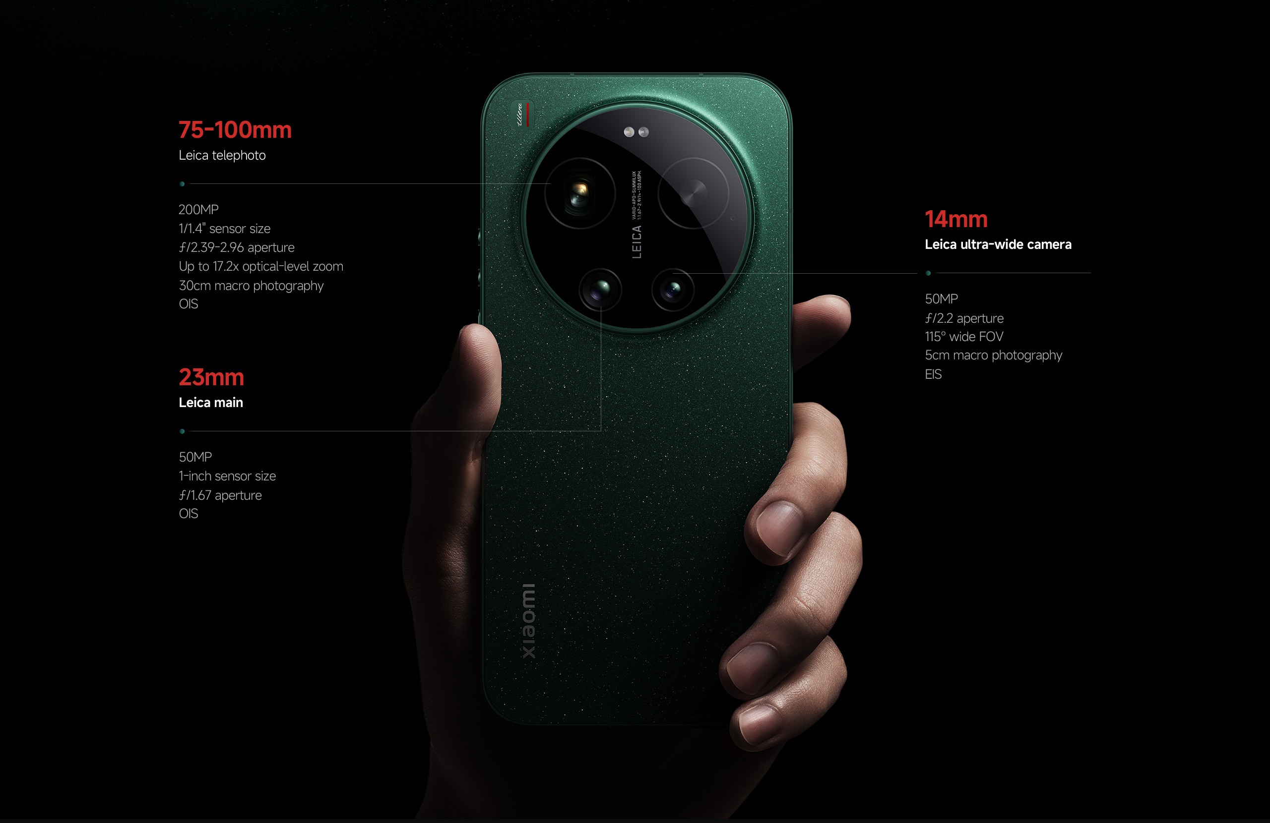 Díky optickým čočkám Leica APO 200 Mpx 75 až 100 mm fotoaparát s teleobjektivem účinně potlačuje barevné vady a poskytuje čistší snímky s přirozenějším barevným podáním.
