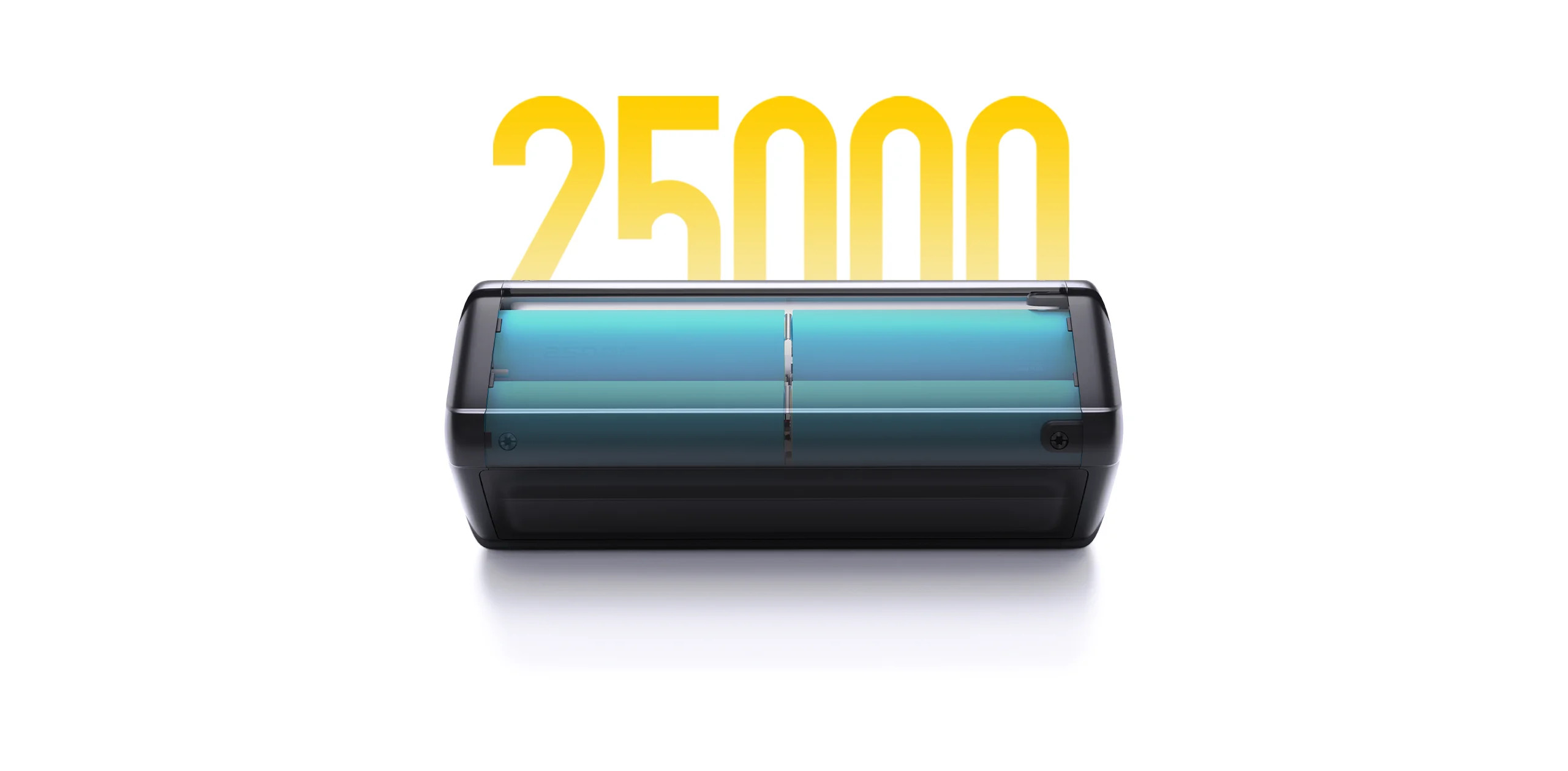 90,8Wh kapacita baterie zajišťuje delší výdrž.Pět 5000mAh vysokokapacitních baterií odpovídají 25 000mAh energie.