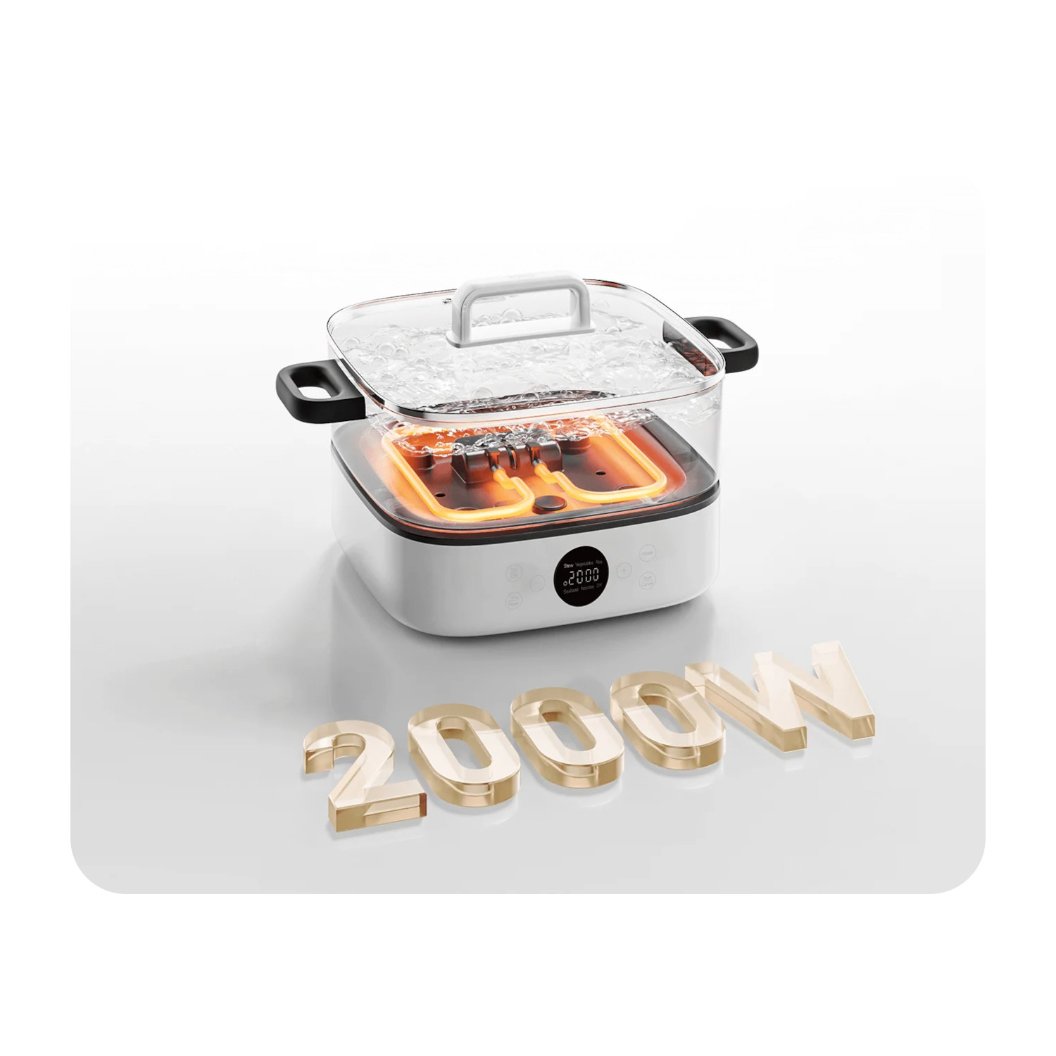 Vysoký výkon 2000 W umožňuje uvaření dvou litrů vody za méně než 8 minut.