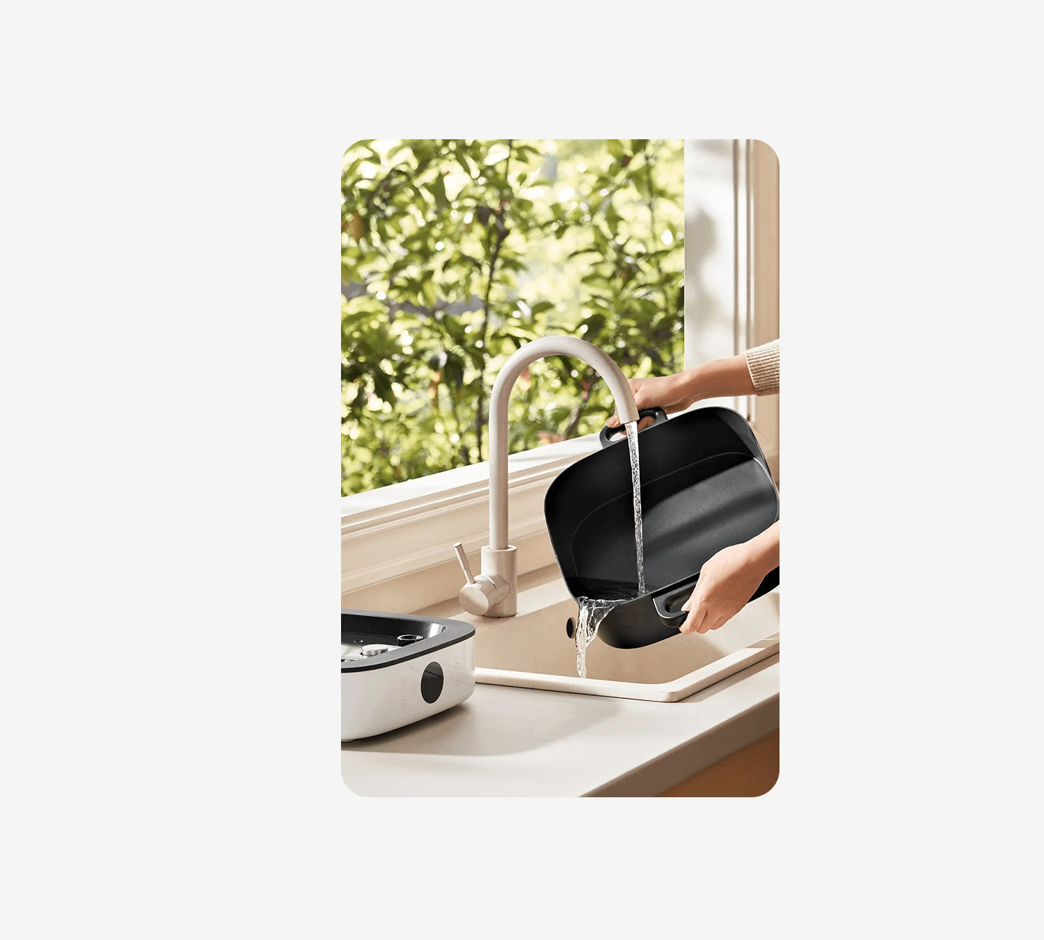 Nepřilnavá, odnímatelná nádoba se dá jednoduše umýt, takže je čištění opravdu rychlé.