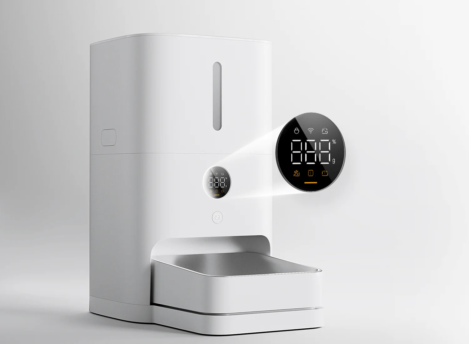 Na přední LED obrazovce s vysokým rozlišením se v reálném čase zobrazuje hmotnost jídla v misce.