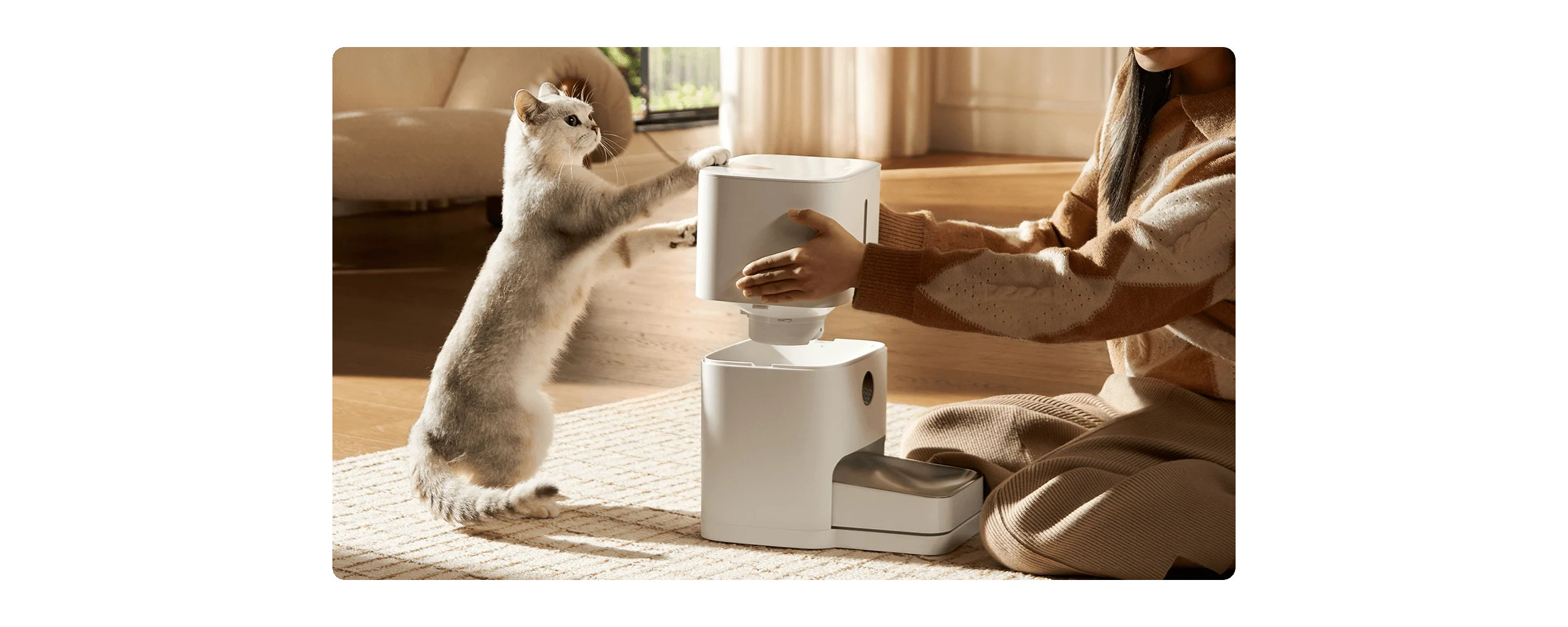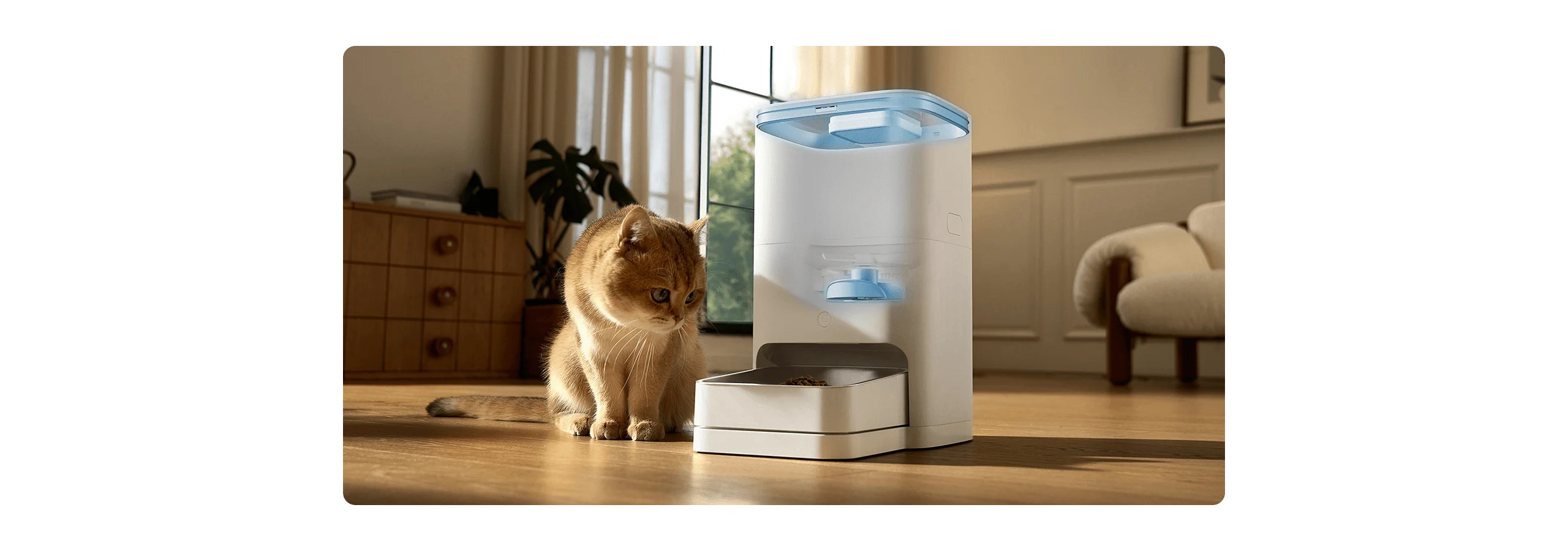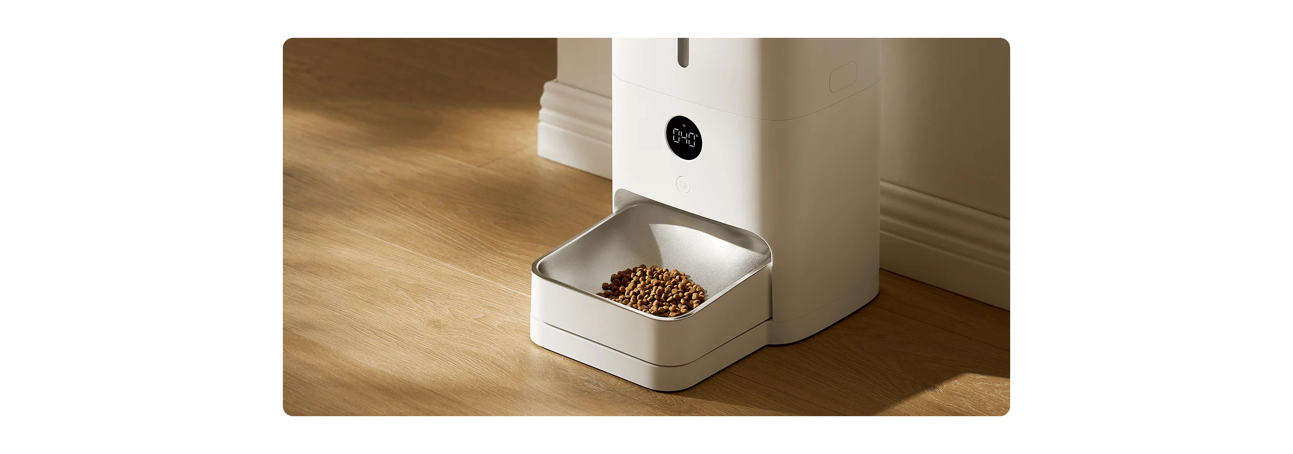 Vestavěný systém nouzového napájení pojme čtyři baterie AA, takže udrží plánované krmení i při nečekaných výpadcích internetu a elektřiny.