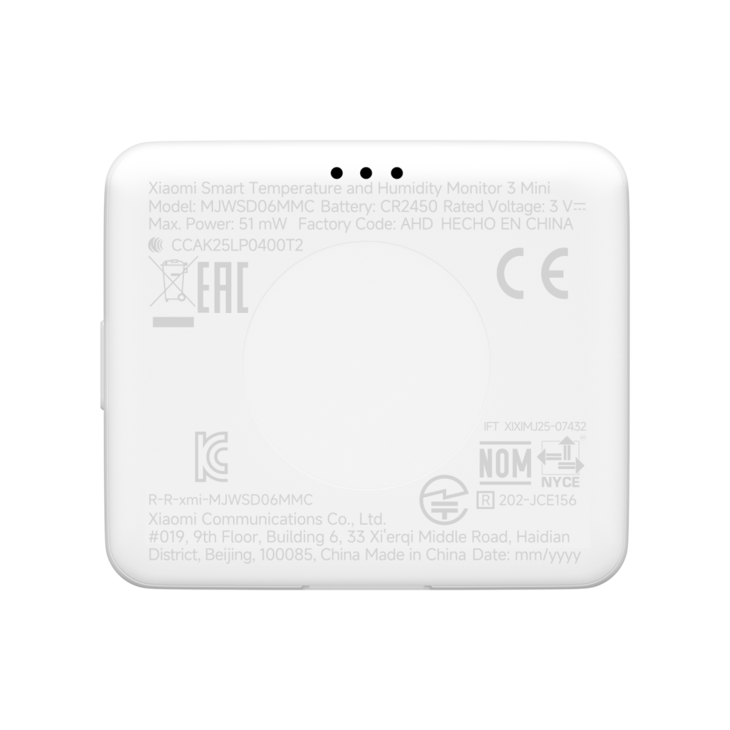 Specifikace Jmenovité napětí: 3 V Bezdrátové připojení: Bluetooth 5.0 Low Energy Rozeznání teploty: 0,1 ℃ Rozeznání vlhkosti: 1 % RV Materiály: ABS Model baterie: CR2450 (součástí) Teplotní rozsah: 0 °C až 60 °C Rozsah vlhkosti: 0 % RV až 99 % RV Maximální výkon: 51 mW Aplikace: Xiaomi Home