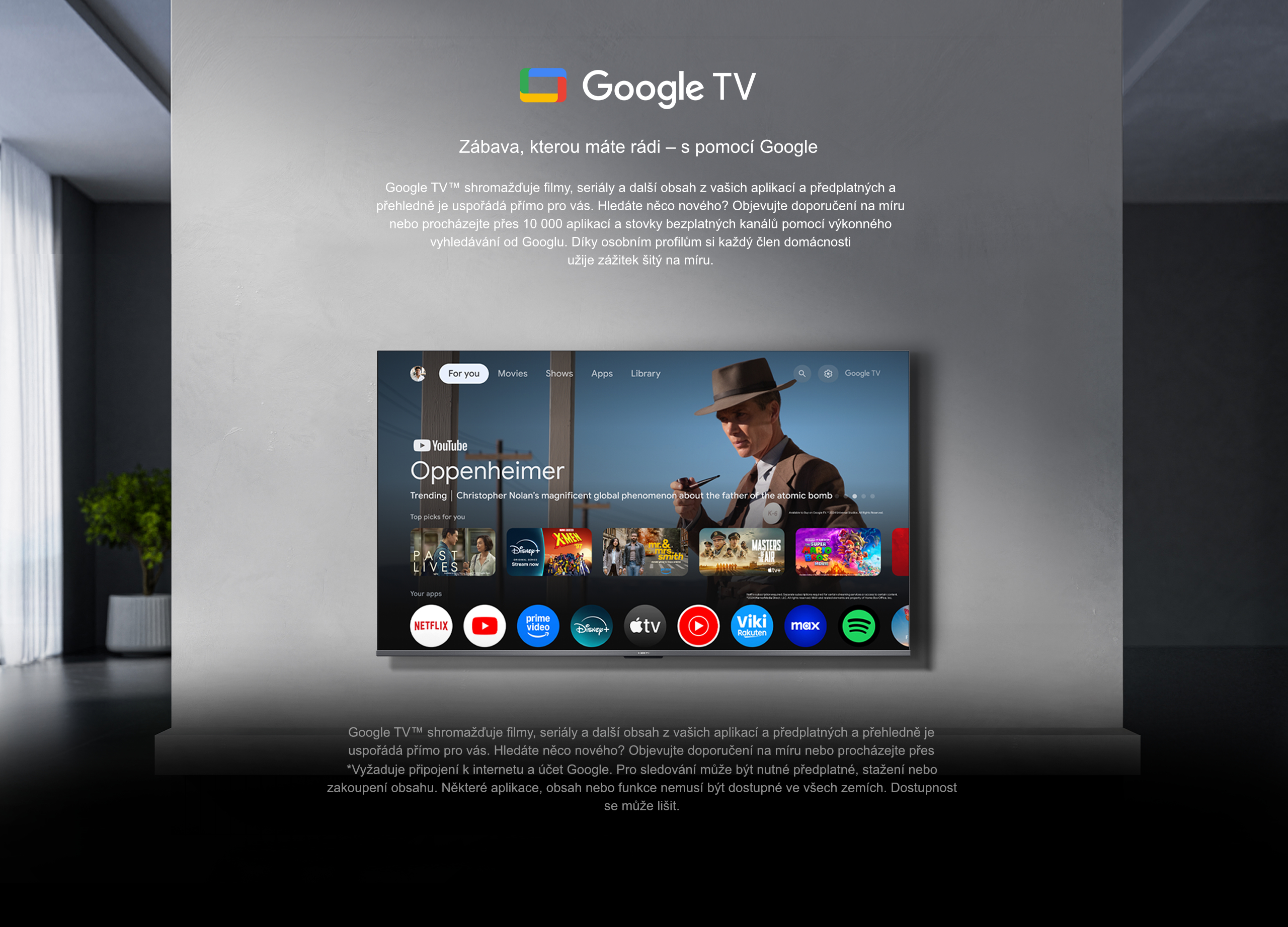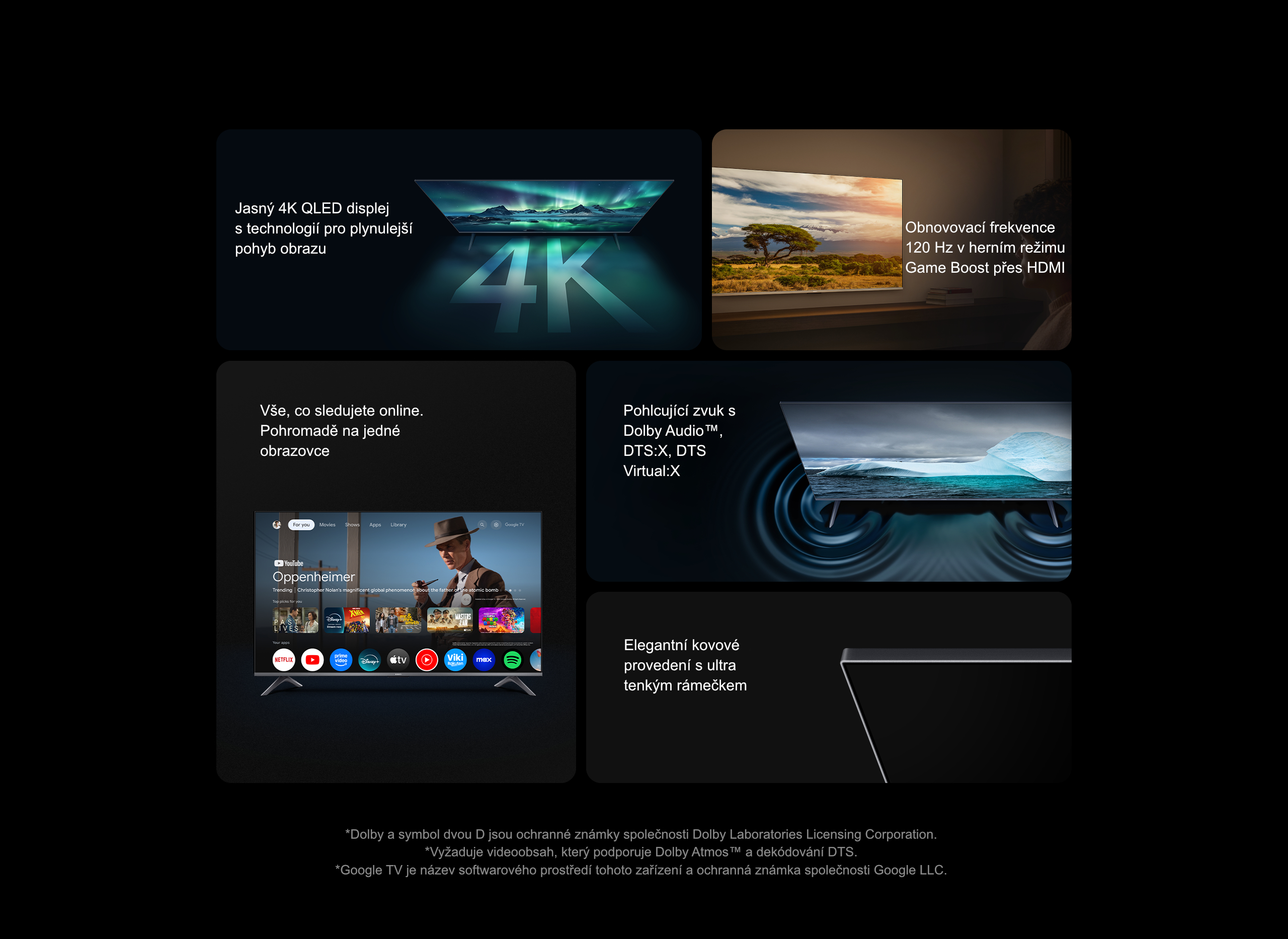 Systém Operační systém: Google TV Hlasové ovládání: Google Assistant built-in Funkce: Podpora Google Cast a Miracast Předinstalované aplikace: Netflix, Prime Video a YouTube Apple podpora: Spolupracuje s Apple Airplay