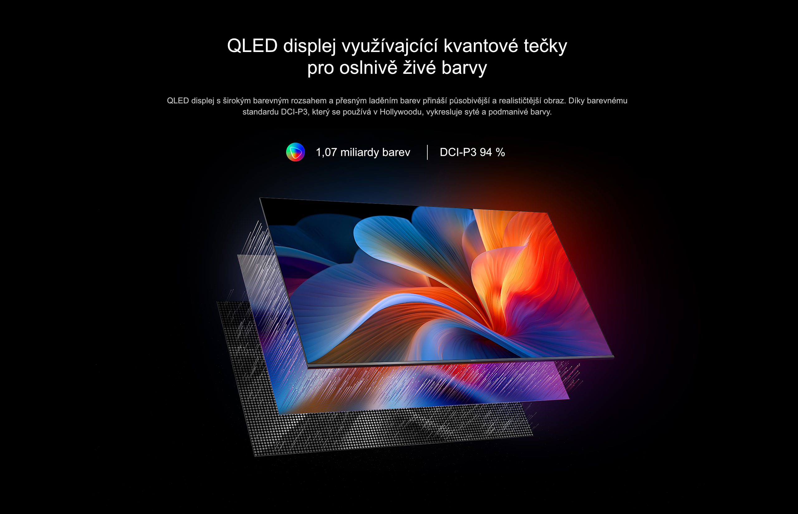 Displej Velikost obrazovky: 43″ Rozlišení obrazovky: 3 840 x 2 160 Obnovovací frekvence: 60 Hz Hloubka barev: 1,07 miliardy Barevný gamut: QLED DCI-P3: 92 % (min.) / 94 % (typický) Pozorovací úhel: 178° (H) / 178° (V) Obrazová technologie: HDR10+/MEMC/režim Filmmaker
